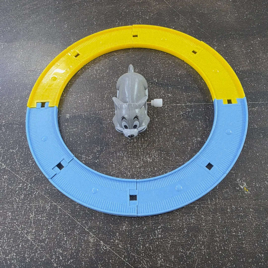 It looks like you have a set of train tracks that can be assembled, and the engine comes with various character options like Tom, Jerry, Turtle, and Rabbit. You can arrange the 8 pieces of track to form a circular or linear path, and then fix the engine in place. The toy likely involves a fun, interactive experience with different characters. If you need help creating content for Instagram, a description for this product, or something else, just let me know how you’d like to proceed!